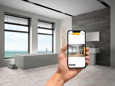 Plánovač miestností funguje na smartfóne rovnako jednoducho ako na monitore počítača. Ak ste u zákazníka, postačuje fotografia izby, ktorú nahráte do plánovača izieb cez odkaz. Teraz môže klient priamo na smartfóne vidieť, ako rôzne podlahy menia miestnosť. Ak k vám príde zákazník do showroomu, potrebujete fotku miestnosti vopred. V rámci konzultácie prejdite na partnerský portál na webshop.schachermayer.com, prejdite na „Plánovač miestností“ a nahrajte fotografiu. Spoločne sa môžete preklikať výberom značkových podláh a inšpirovať sa rôznymi dekormi a povrchmi.