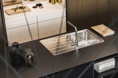 Kuchynské drezy Alveus patria k najhrubším kuchynským drezom na trhu, pretože sú vyrobené z ušľachtilej ocele CrNi 18-10 hrubej do 1 mm z vysoko pevných kompozitných materiálov. Pevnejší materiál ponú